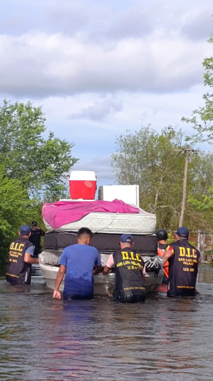SAN LUIS DEL PALMAR; LA POLICIA SUMA MÓVILES Y PERSONAL PARA BRINDAR SEGURIDAD, COLABORACIÓN Y AYUDA EN EVACUACION Y RESCATE